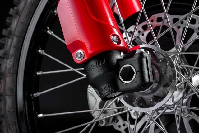 5、制动系统保持不变,Brembo布雷博配套的刹车卡钳、Galfer 配套的刹车碟(前碟直径 260 mm、后碟直径 240 mm);容量为 7.2 公升的油箱;电子辅助控制系统方面,标配了带有前叉下压功能的 Holeshot 起步弹射控制系统,两种可选的骑行模式、两个可选的动力模式,四种不同级别介入程度可调的 DTC 牵引力控制系统,启动控制,发动机制动控制,快速换档系统;