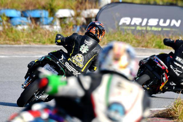 有多达 21 位车手,报名参加这次 2025 伟业达 GP 粤港澳大湾区摩托车大赛恩平站、中策橡胶艾瑞森轮胎电车 B 组的角逐,这一组别的参赛者使用艾瑞森的竞技级轮胎。较量从排位赛(计时练习)就开始了:9 号车的马乾福跑出了破纪录的 58.096 秒圈速(此前的旧纪录为 58.974 秒)、拿到了第一节决赛的排头位发车;另外两位车手,6 号车的谢好威、98 号车的王小张也跑出了破旧纪录的 58.19 秒、58.476 秒圈速,分别排在发车位置的第二、第三。