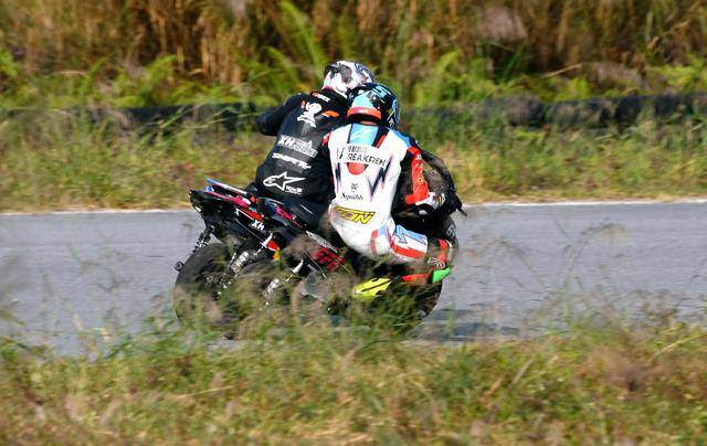 两节的决赛里、多个竞争集团几乎是从起步一直拼到最后冲线,你穿我插的交织、其激烈程度堪称是让人眼花缭乱。第一节比赛,带头的谢好威与马乾福拼了大半场比赛,直到比赛末段、马乾福与被套圈的车手发生擦碰而摔倒之后,这场对决才宣告结束。谢好威夺得了第一节决赛的胜利,并再次刷新了组别最快圈速纪录 57.376 秒。15 号车的赵益开、马乾福分别拿到了第二、第三。