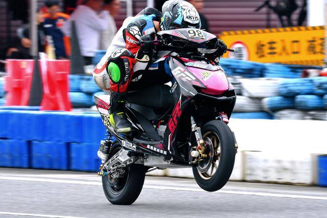 伟业达 GP 自 2018 年开设了电动车组别以来,踏板型的比赛就开启了新的时代。这一组别以其强劲的扭力而著称、轻松地就能够让前轮抬起,而对于轮胎来说、这一组别是一个充满挑战的考验。