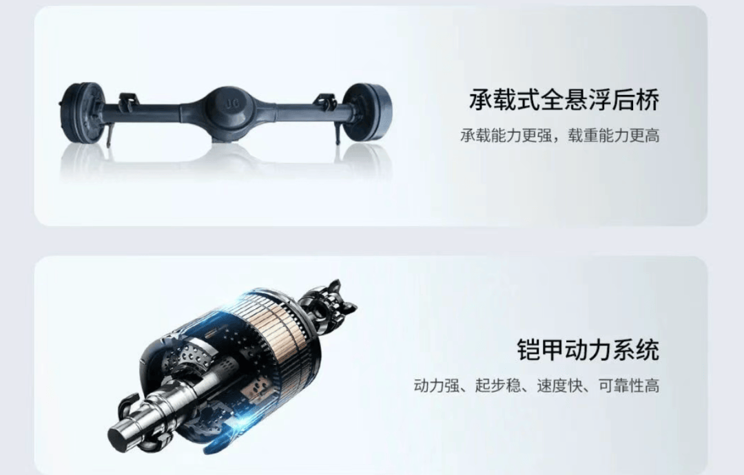 在载重方面,战神R采用钢板门芯+钢板箱底设计,搭配5*7加宽车架和全悬浮一体后桥,构建高刚性车身骨架。 318加大球墨铸铁差速器箱体增强抗冲击性,极端路况下仍能稳定输出。