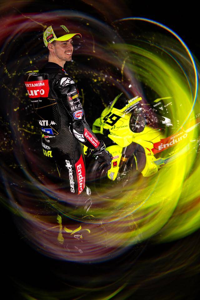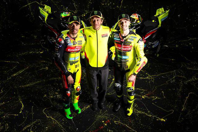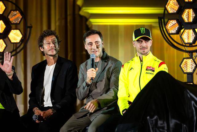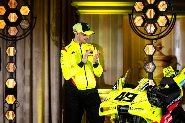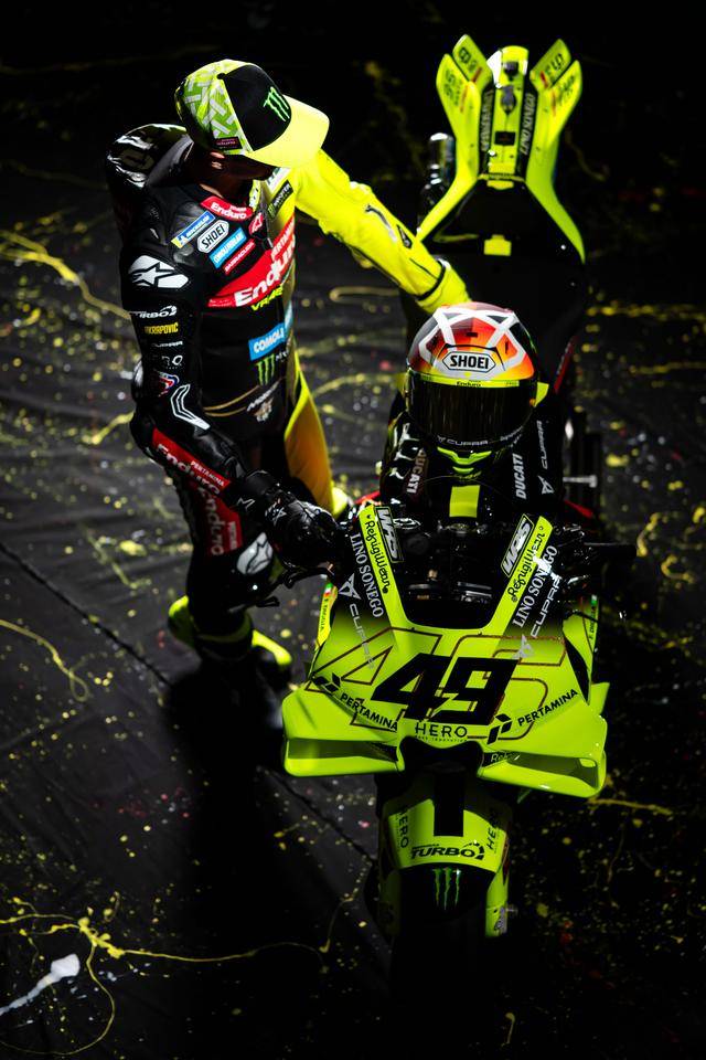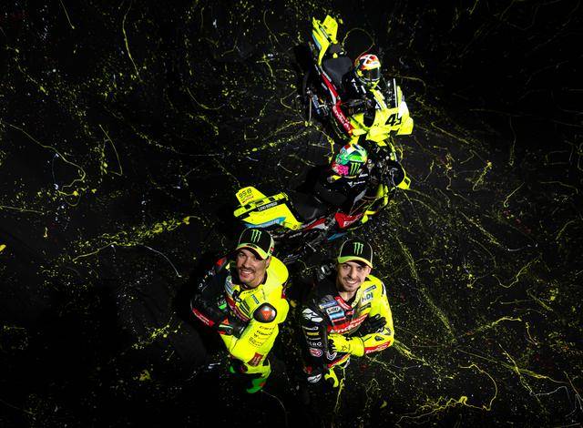 “ 车队今年的涂装色彩风格改变了,这是我们与德鲁迪(Aldo Drudi)合作进入第三个赛季之后、再次共同完成的一个方案。三年前,(我们决定)稍微修改车队的形象,我们选择了白色 + 黄色作为赛车的色彩(注:VR46 车队最初以黑色作为标志性的主色调,尤其是在 2021 年之前、只有在 Moto2 和 Moto3 的年代),去年我们决定继续做这样的选择。但今年我们想改变,我们保留了黄色、这是我们的 ‘ 传统 ’ 颜色,但加入了黑色、这(让它看起来)更具速度感,并更多地回到了我们的经典颜色。所以,车队已经准备好了,现在我们只需要跑得快。”