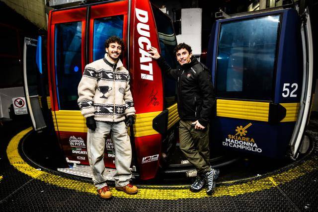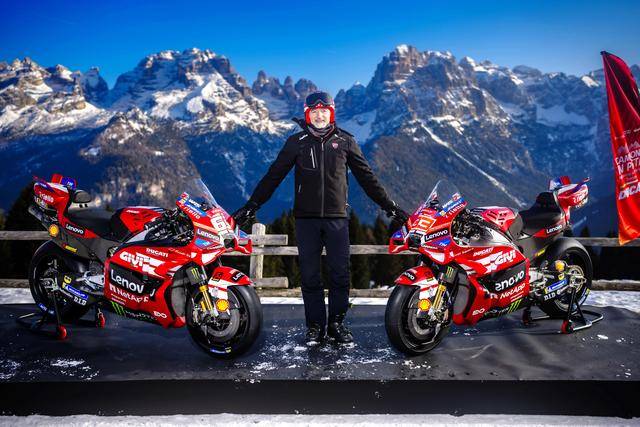 一月 19 日,Ducati杜卡迪在意大利北部多洛米蒂(Dolomites)山区的滑雪天堂 — Madonna Di Campiglio 滑雪场,发布了他们在 FIM GP 世界锦标赛(FIM Grand Prix World Championship,也被称之为 MotoGP)2026 赛季的 MotoGP 工厂车队新涂装。在新赛季,车队沿用了去年的车手组合:驾驶 63 号车的意大利车手巴纳亚(Francesco Bagnaia),以及应届世界冠军(车手年度积分总冠军)、驾驶 93 号车的西班牙车手马昆斯(Marc Marquez)。