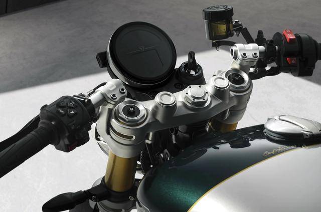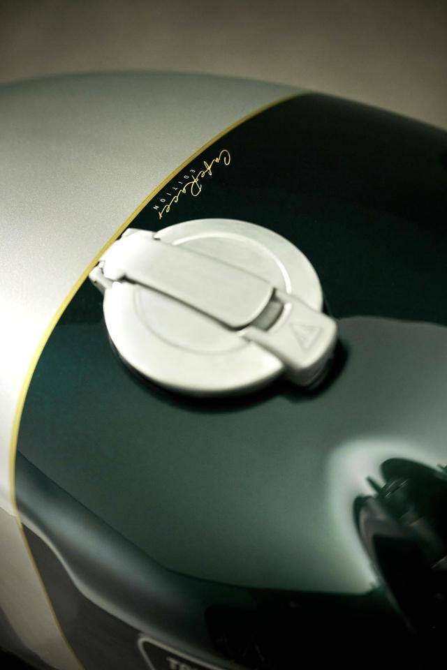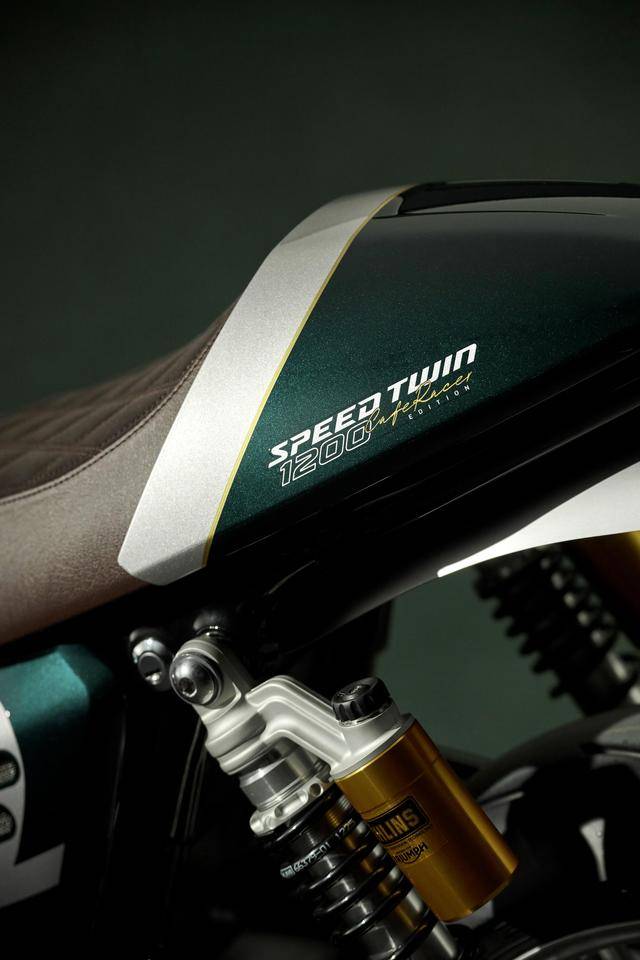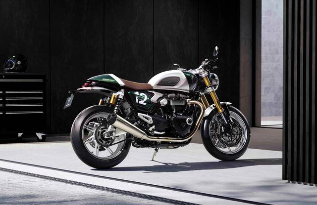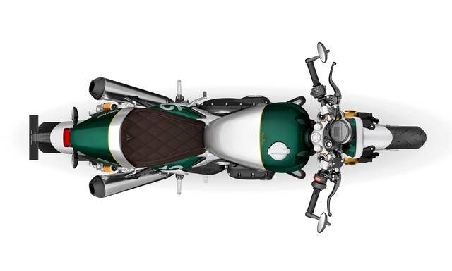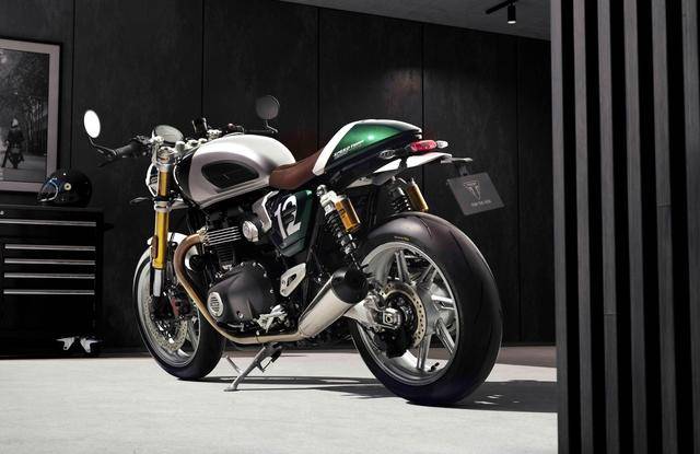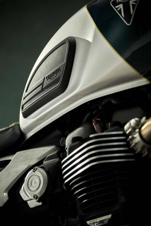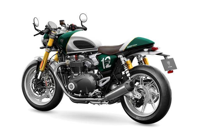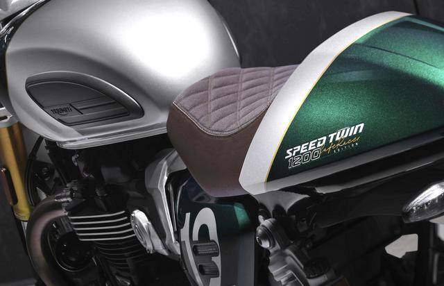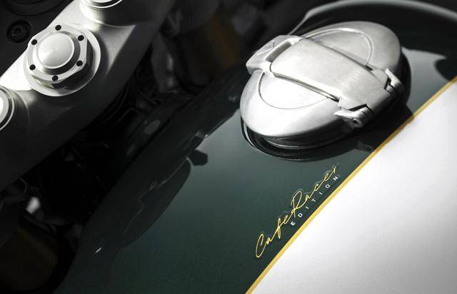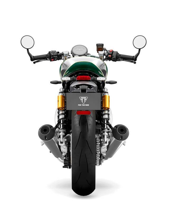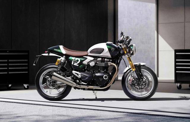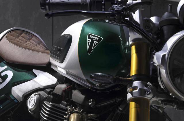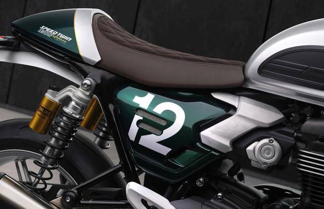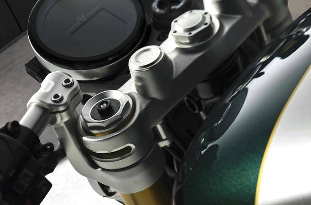 6、换装了更有质感的鞍座以及位于车把两端的后视镜,油箱两侧的大腿位置处也标配了防磨垫(RS 版没有此标准装备);采用了一个独特的、凯旋在上世纪时赛车传统风格的竞赛绿(Competition Green)与铝银色(AluminiumSilver)相结合的车身图案;标准轴距保持在 1414 mm、鞍座高度仍为 810 mm,全车整备重量 217 公斤(RS 版为 216 公斤)。