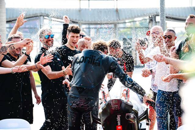 阿普利亚赛车部门的 CEO 里沃拉(Massimo Rivola)则表示,“ 我们感到非常满意,因为续约是我们的首要任务。我们想以一种特别、有趣的方式庆祝签约,我认为这与贝泽奇的个性非常契合。我们已经建立了一条坚实的基础,尽管他也有收到其他(车队)各种报价,但他选择了留在我们这里、让我们非常高兴,这也进一步突显了阿普利亚这支团队(出色)的工作和精神。”