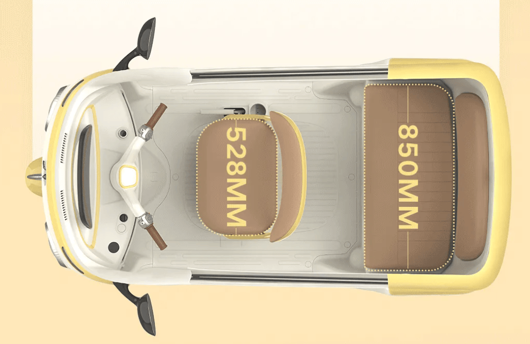空间与舒适性堪称同级标杆,座舱采用宽体设计,内部横向空间达1200mm,配备前后双排三座布局,后排座椅宽度980mm,可轻松容纳两位成年人或两个孩子,搭配贴合人体工学的高回弹记忆海绵座椅,软硬适中,能有效缓解长时间乘坐的疲劳感。座舱内部可开启全景天窗与侧窗,通风换气便捷,告别闷热困扰。