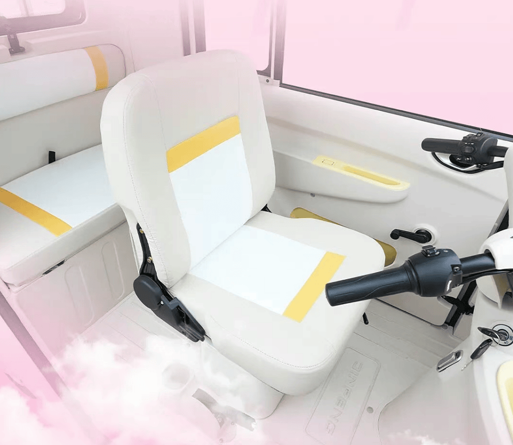 空间设计贴合家庭出行需求,宽体座舱布局让前后排乘坐空间充裕,轻松容纳一家三口,后排还能灵活放置孩子书包、日常采购物品,兼顾载人与储物。配置上尽显人性化,座舱采用通过 SGS 国际认证的汽车级环保内饰,无甲醛无异味,守护家人呼吸健康;符合人体工学的气旋坐垫柔软回弹,长时间乘坐也不疲惫,搭配一体式车篷,真正实现遮风挡雨的舒适代步。