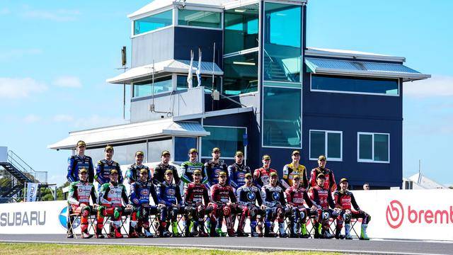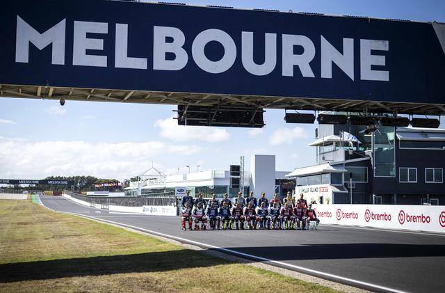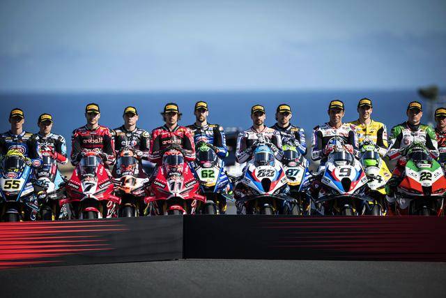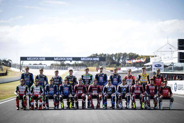 下面的图片,新赛季揭幕战的例行环节,周四(二月 19 日)时 WSBK、WorldSSP 两个级别的赛前大合照。