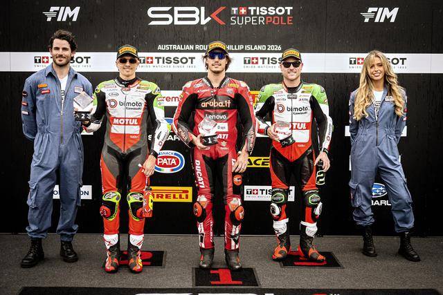 上周末(二月 21 日)进行的第一节正赛,从排头位发车的布雷加,开场就取得领先,一路领先之下、顺利夺得了 2026 赛季第一场比赛的冠军。这是布雷加在 WorldSBK 最高级别的第二十一次胜利,同时也是他连续第十四次登上颁奖台,这一数字追平了英国的四届世界冠军(车手年度积分总冠军)科格迪(Carl Fogarty)在 1994、1995 赛季时所创下的纪录。