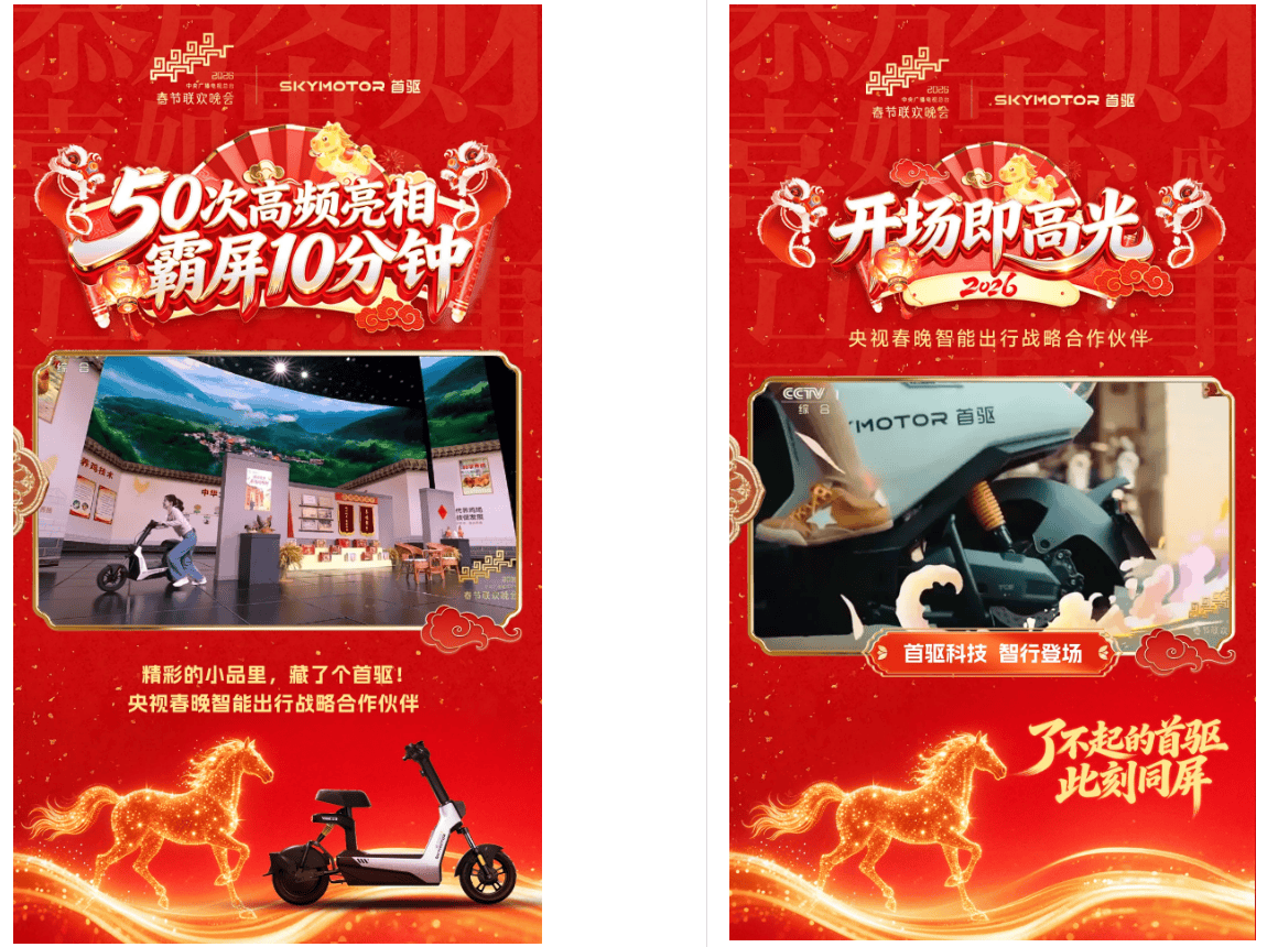 2026年除夕夜,首驱科技以“智能出行战略合作伙伴”身份亮相央视春晚。这是两轮电动车品牌首次进入春晚主舞台的合作序列,也是春晚创办四十余年来对智能出行赛道的首次战略卡位。一个成立仅一年的企业,为何能获得国家级平台的信任票?答案,需要从国家战略方向、企业核心能力以及产业代际更替三个维度来理解。