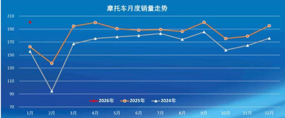 进入2026年1月我国燃油摩托车业,迎来了一个小小的开门红。中国摩托车商会数据显示,1月全行业燃油摩托车完成了172.36万辆的销量,同比有3.97%的增长率。