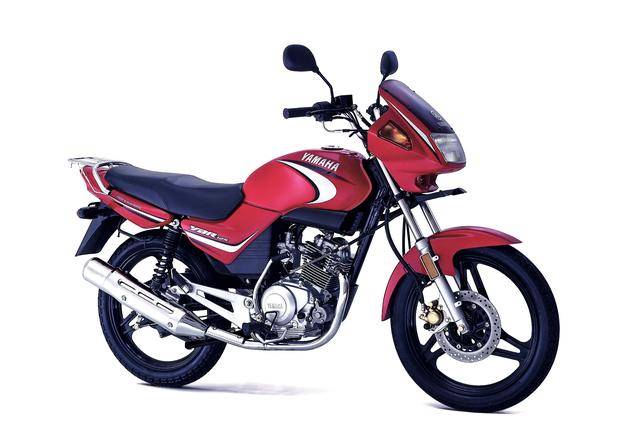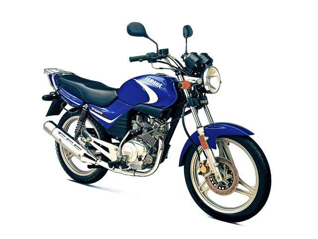 下面的图片,2003 第一代的 YBR125 “ 天剑 ”。为了进一步适应市场的不同需求,该车有前鼓刹(钢线式前后车轮)、前碟刹(合金铸造前后车轮),没有车头整流罩的圆灯版,带车头整流罩的四方灯版,多个不同的配置供选购。