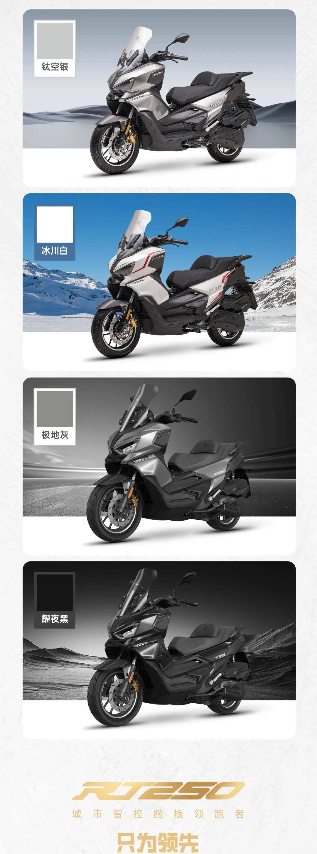 绝影棕新色,以古典名马意境融合现代智能科技,为城市骑行注入更多仪式感与安全感,马年启新程,智骑不设限。赛科龙 RT250 已上市数个月,市场反馈良好,这次更有千元礼包活动,还包含了铝合金尾箱和护杠,让原本就有极高性价比的RT250更加超然。