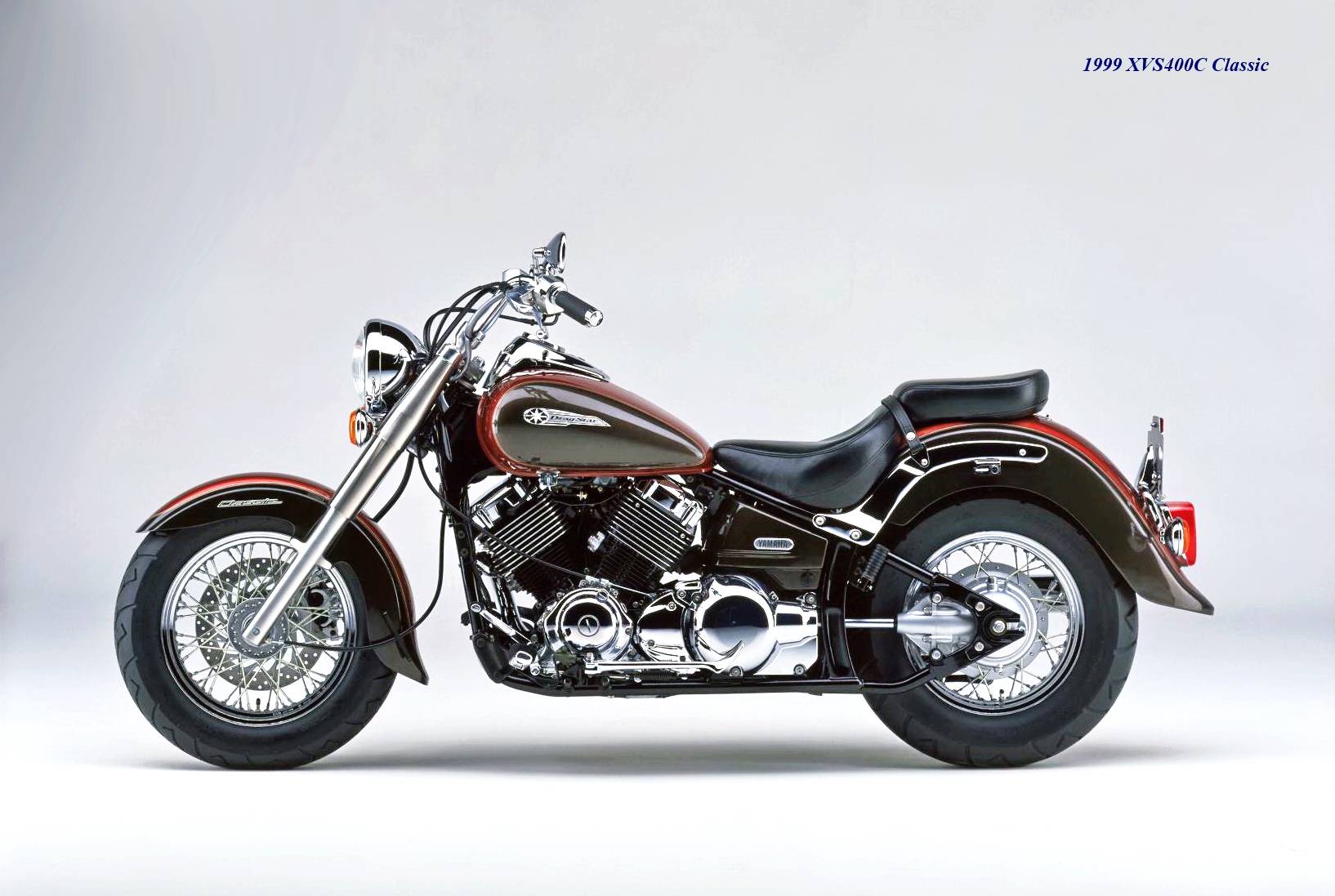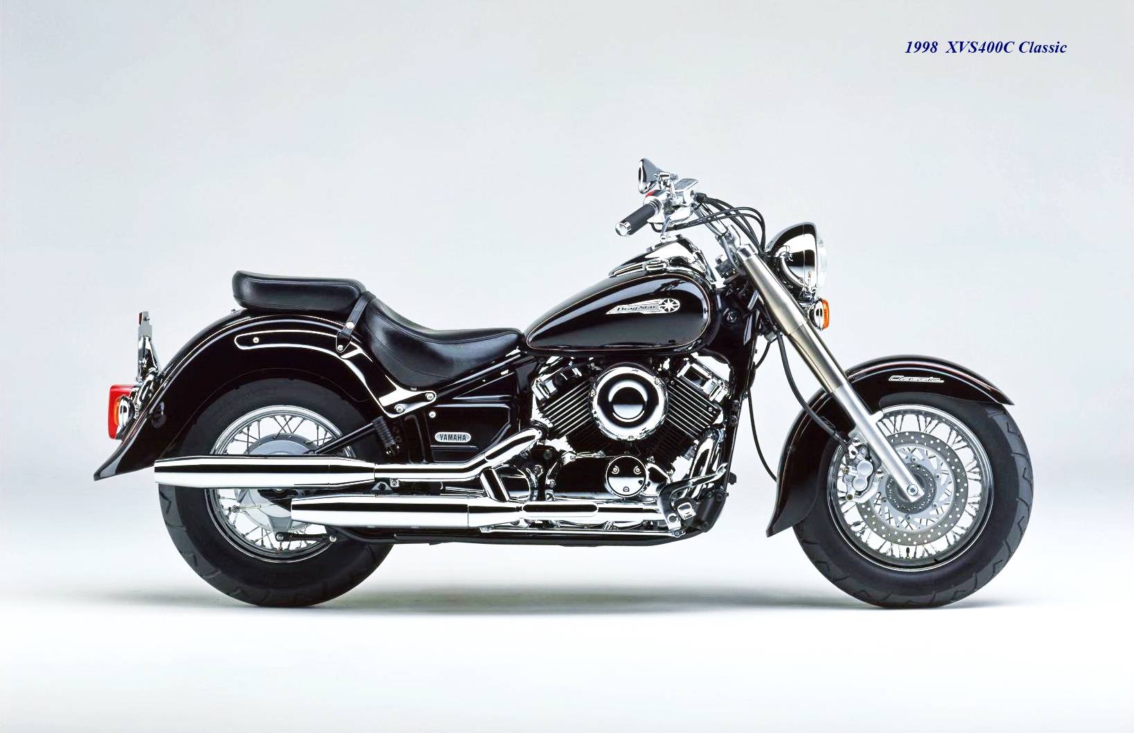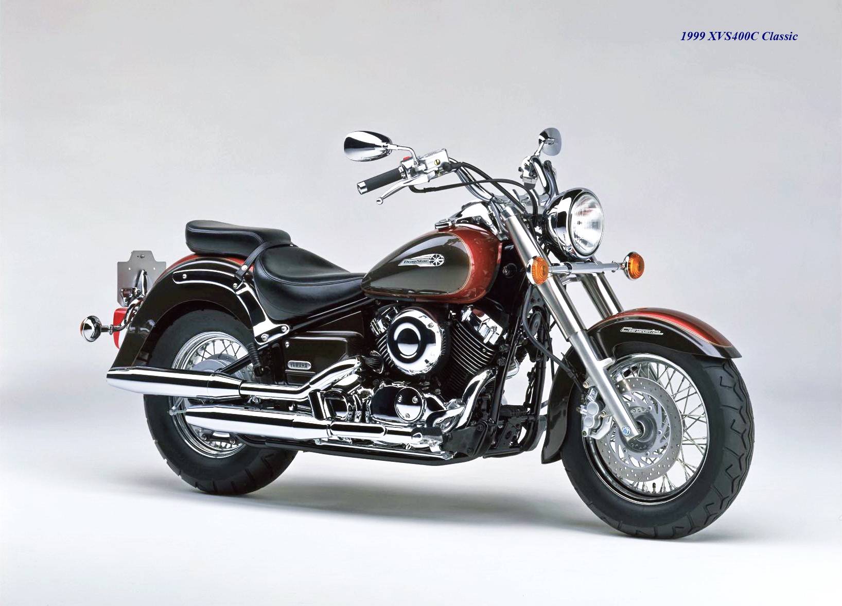 * 1996 年 XVS400 的第一款车型上市,随后并推出了更具怀旧风格的 XVS400C Classic 经典版(也称之为 DSC4)。与标准版相比,Classic 经典版采用更 “ 粗壮 ” 的前大灯、弯灯,更 “ 硕大 ” 的前后轮挡泥板,更厚的鞍座,让前端显得更 “ 粗壮 ” 的电镀前叉套,全车也有着更多的电镀组件;