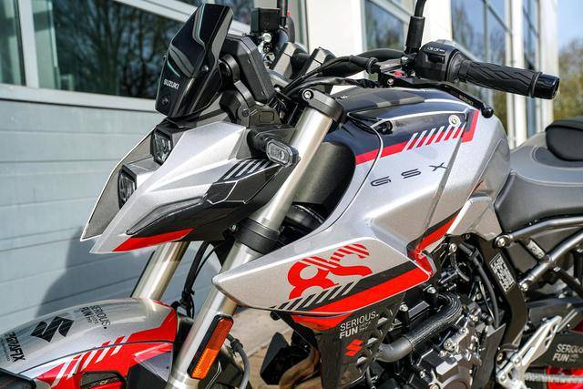 属于中量级的运动街车 GSX-8S 算得上是 Suzuki 近年来之全新产品的焦点,该车在 2022 年十一月首次公开、次年正式上市,是厂方在疫情后的首个全新中、大型车。该车搭载一副水冷四冲程直列两气缸、DOHC 每气缸四气阀的发动机,缸径、行程为 84 mm x 70 mm,压缩比 12.8:1,排气量 776 cc,双平衡轴(厂方称之为 Cross Balancer 交叉式平衡轴)、270 度曲轴点火位的设计,最大动力输出为 61 kw/8500 rpm。