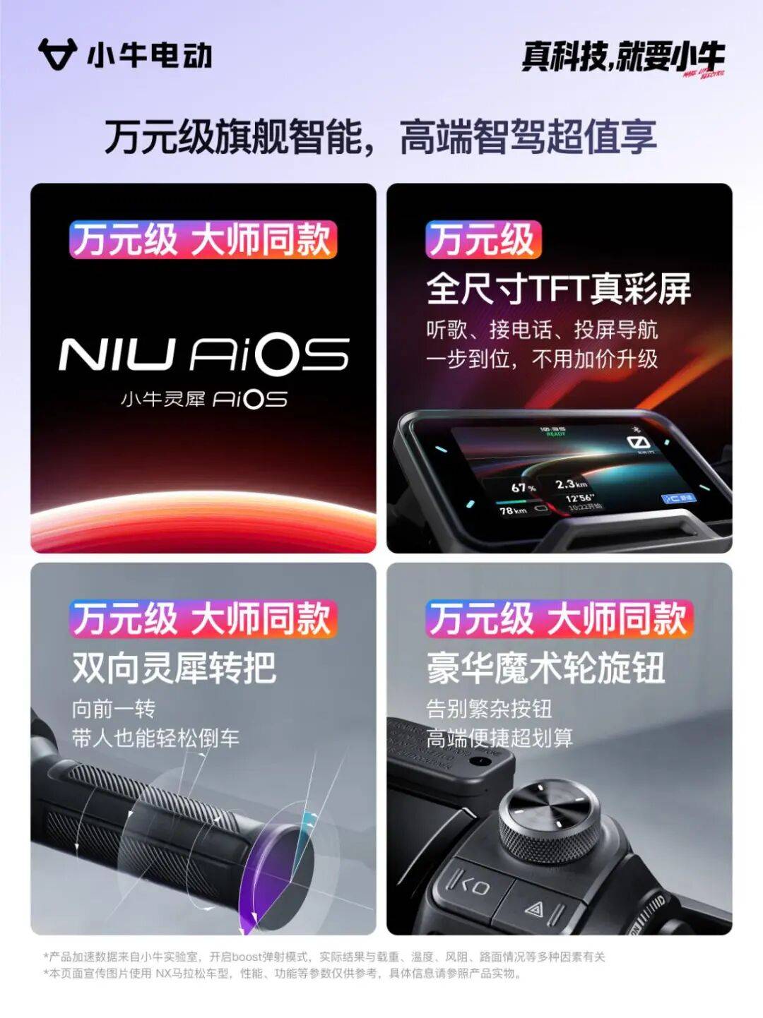 作为 AI 电摩新物种,NX 2026系列电摩产品首次搭载了小牛电动于2026科技新品发布会上发布的小牛灵犀 AIOS,亦标志着小牛电动 AI科技从旗舰车型全面下沉到主流性能电摩。