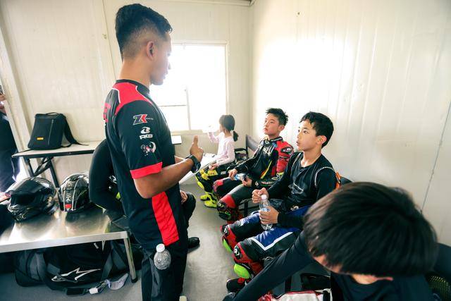 退役之后的凯鲁丁,一直是马来西亚知名的公路型赛车培训学员 SIC 的总监,且是 FIM MotoMini 马来西亚系列赛的负责人。而这次作为助教车手随队而来,曾在 FIM MiniGP(FIM MotoMini 的前身)2023 年度的全球总决赛 160 级别里,击败了众多了欧洲强手、以满分夺冠而大放异彩的马来西亚小车手 Qabil 伊凡,则是他的得意门生。