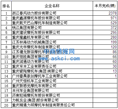 • 2019年1-11月前十家摩托车生产企业销量排名