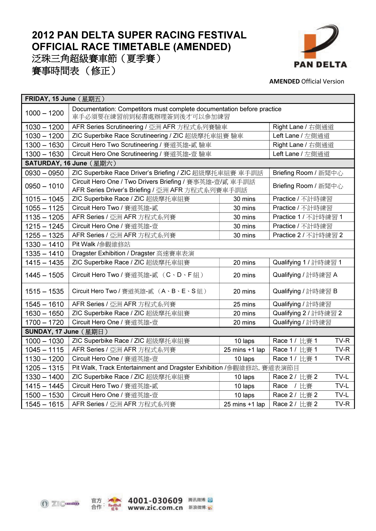 2012'泛珠三角超级赛车节(夏季赛)赛事时间表