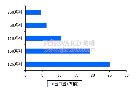 据前瞻数据中心监测:2012年9月,出口量位居前五位的系列品种为:125系列(110ml<排量≤125ml)、150系列(125ml<排量≤150ml)、110系列(100ml<排量≤110ml)、50系列(排量≤50ml)和250系列(150ml<排量≤250ml),分别出口25.04万辆、19.25万辆、10.63万辆、6.28万辆和4.66万辆。与上月相比,110系列增长较快,250系列略有增长,其它品种有所下降。9月,上述五大系列品种共出口65.86万辆,占摩托车出口总量的90.43%。