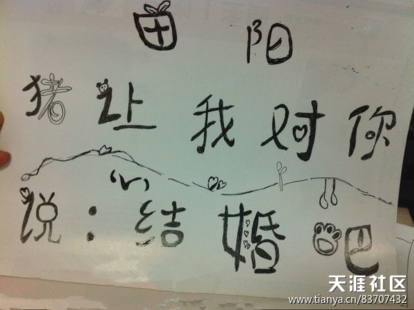 为了表达求婚的真情,该网友准备骑上踏板车,从江苏连云港经山东烟台,渡过渤海,从大连上岸,最后到达辽宁通化市,向名为田阳的女友求婚。在天涯,这位网友还向网民收集祝福语,并准备整理后,作为击中心上人泪点的秘密武器。