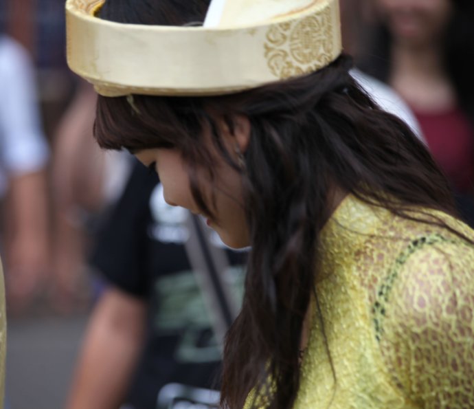 新娘有点羞涩地低西下了头。