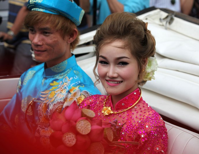 身穿越南传统服装的新郎和新娘