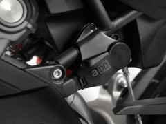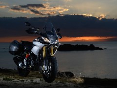 2013款 Aprilia Caponord 1200 全新历险旅行车 该款原型车Caponord 1000于2001年上市,士别十余载直到今日才推出后继车型2013款Caponord 1200。全新车款配置了新式电子油门,可提供三种动力模式,而ADD(Aprilla Dynamic Damping)半主动式动态避震技术乃首次使用。该车最大马力128hp @ 8500rpm、最大扭力85 lb-ft @ 6500rpm、座高840mm。该款主打耐力街跑路线,具有安全、性能和舒适三大特点!
