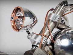 In 2011, Paul Jr., Jesse James and Paul Sr. went head to head in the ultimate builder showdown. Paul Jr. chose to style the PJD bike with inspiration drawn from the classic P-51 Mustang fighter plane. Featuring a retro board tracker layout, this bike picks up cues that reflect the classic styles of WWII airplane designs. Details abound on this bike, which -- through the popular vote -- won the Chopper Live build-off.